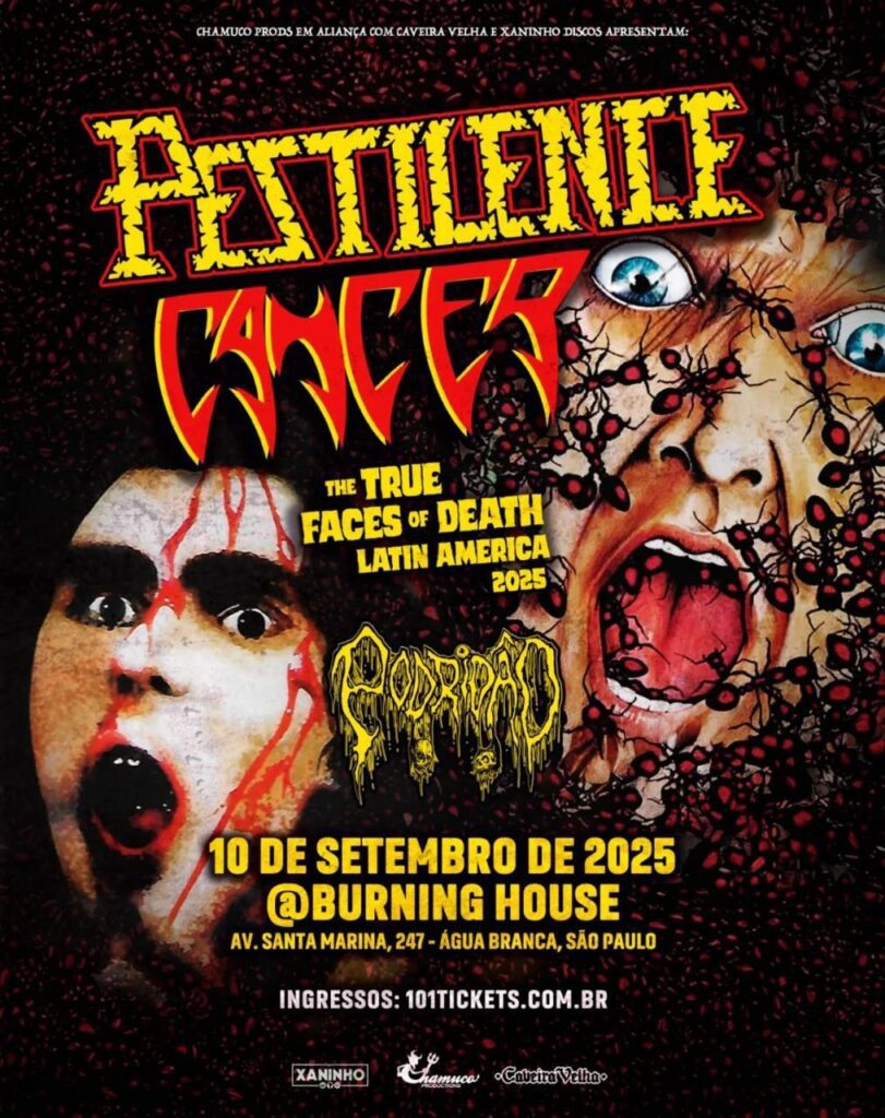 Pestilence e Cancer, respectivamente da Holanda e Reino Unido, são duas veteranas bandas de death metal técnico com discografias consistentes e fãs fieis ao redor do globo. Nesta quarta-feira (10), as bandas se apresentam a partir das 19h no Burning House, em São Paulo/SP. A realização é da Caveira Velha Produções e Xaninho Discos.